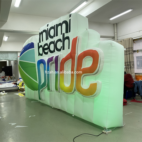 Arco Iris colorido orgullo inflable cartelera orgullo logotipo pared con luz led para eventos de orgullo